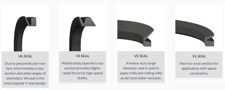 S V型リングは,シャフトに固定された圧力が少ない軸性棒シールとして機能します.柔軟なシールリップは,シャフトに直角で対面をシールし,汚れを防止します.塵と噴霧が建築物に入り込む.180" (4.5mm) シャフトから8.270" (210mm) までのサイズで利用可能.一般的に農業および自動車アプリケーションで使用されます.
